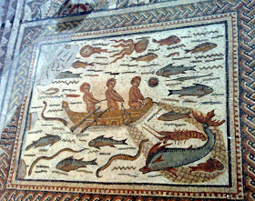 En la sala de mayor tamaño, que hacía las veces de distribuidor, aparece un mosaico de gran tamaño que presenta una escena de pesca. La obra está firmada por Hippolytus, un maestro musivario de origen posiblemente norteafricano -se señala el actual Túnez como lugar más factible-, y fue realizada para una de las familias más importantes de la ciudad.